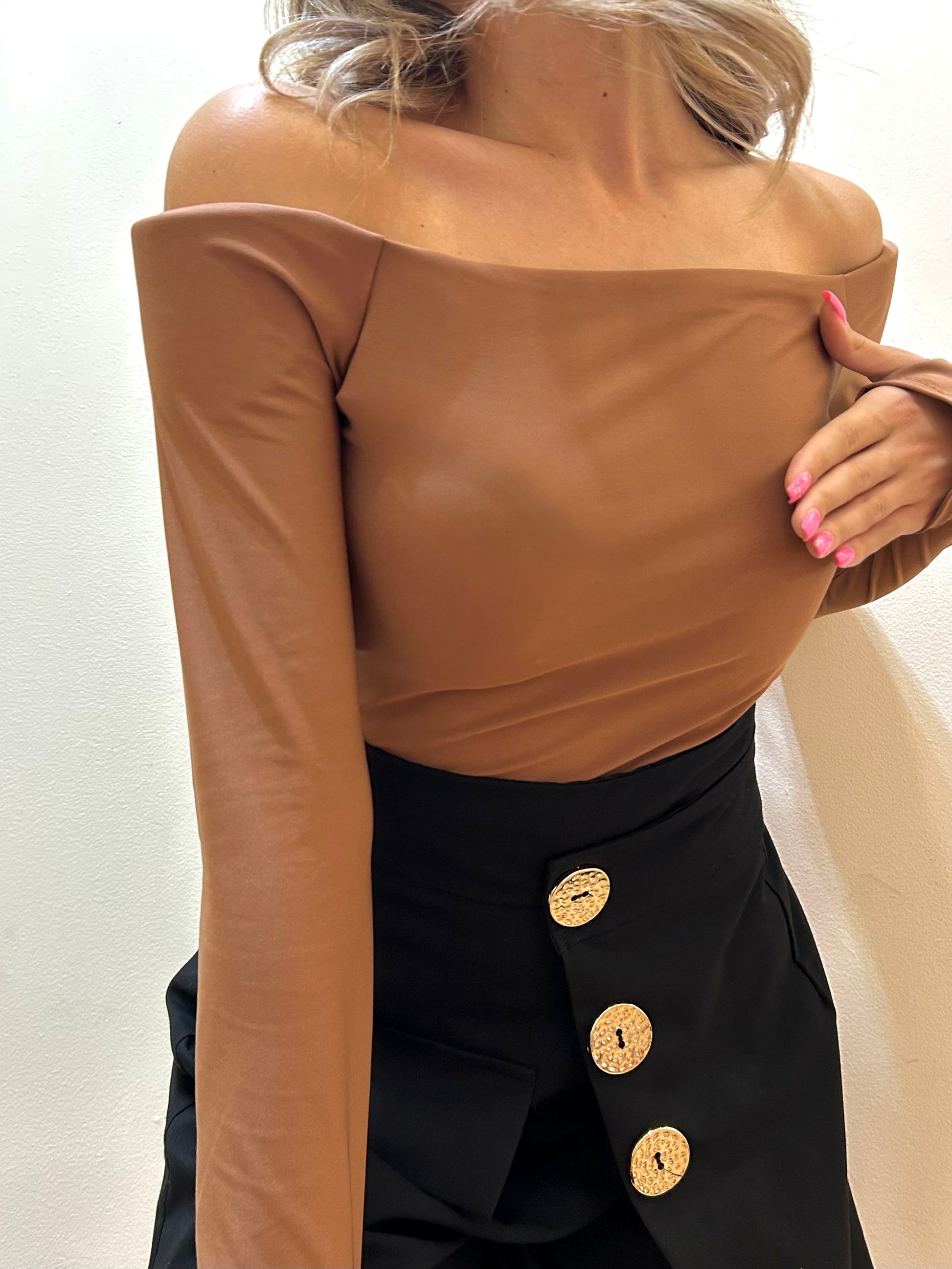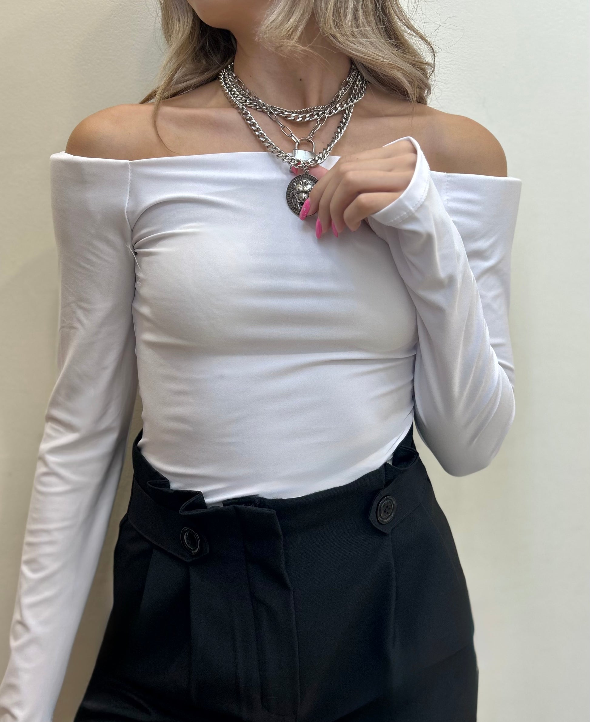 BODY COLLO A BARCA è un body basico con un taglio elegante e unico. Lo spallino laterale conferisce un tocco di originalità, rendendolo perfetto per qualsiasi occasione. Indossalo per esaltare le tue spalle e il tuo stile unico!