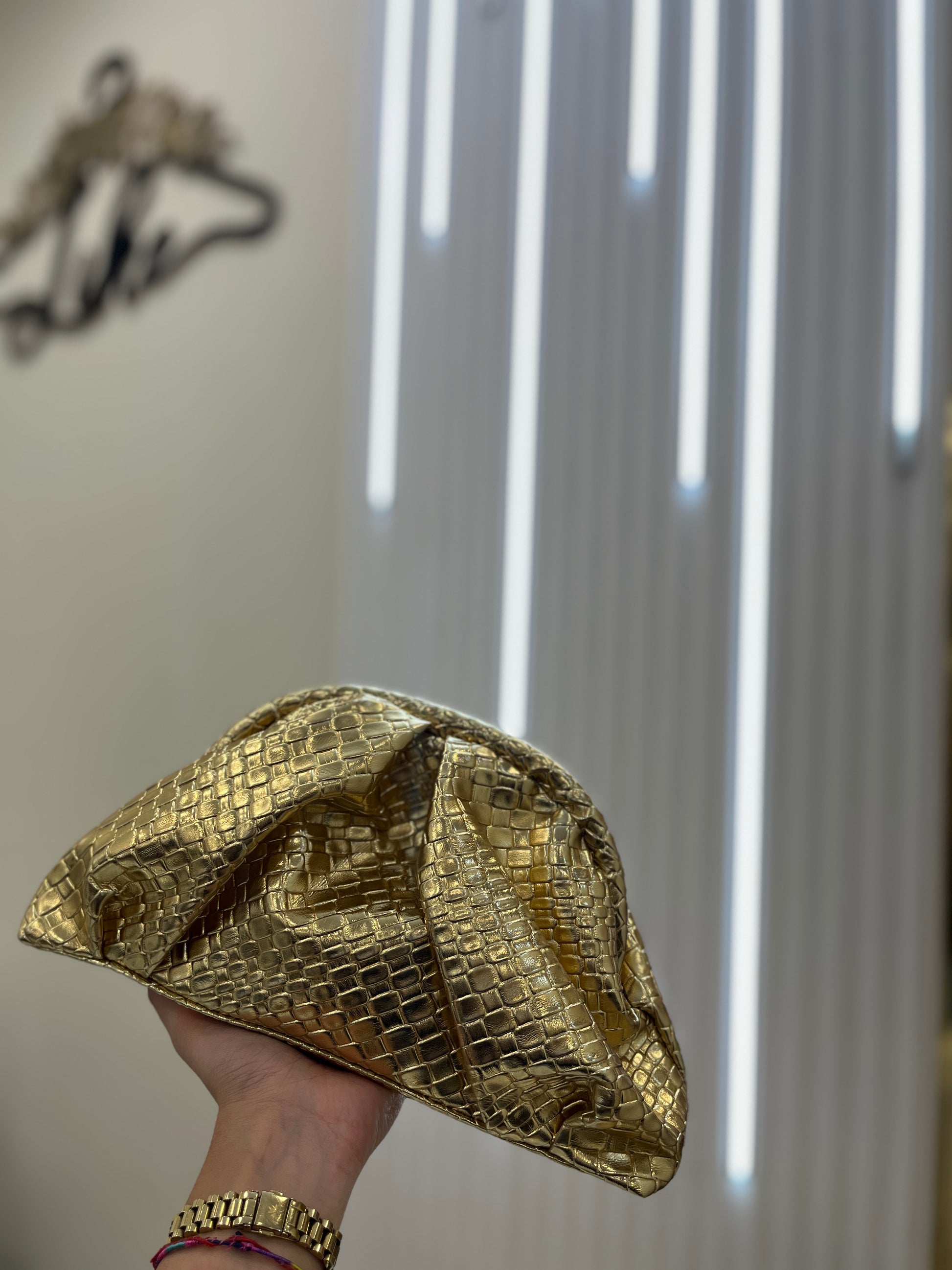 La Aurora Gold è una clutch morbida in ecopelle metallizzata effetto pitonato. Il finish oro luminoso la rende l’accessorio ideale per cerimonie, feste ed eventi speciali. Capiente, leggera e super chic, aggiunge subito un tocco glam ad ogni look.