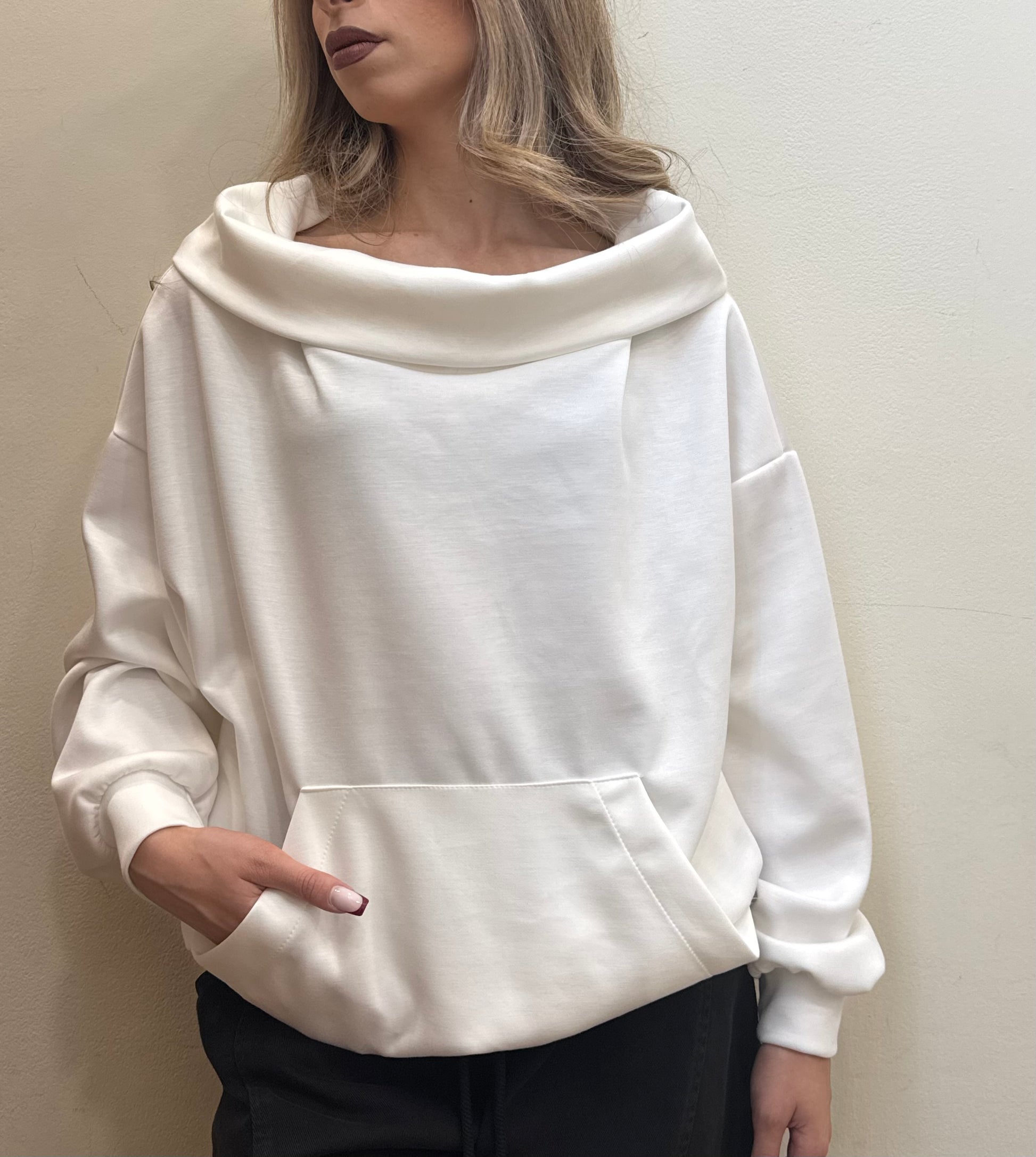 La felpa oversize con collo a barca morbido è un capo di abbigliamento versatile e confortevole. Il design ampio e il collo largo donano un tocco di stile informale ma elegante. Grazie all'alta qualità dei materiali utilizzati, la felpa garantisce morbidezza e calore per un comfort totale.