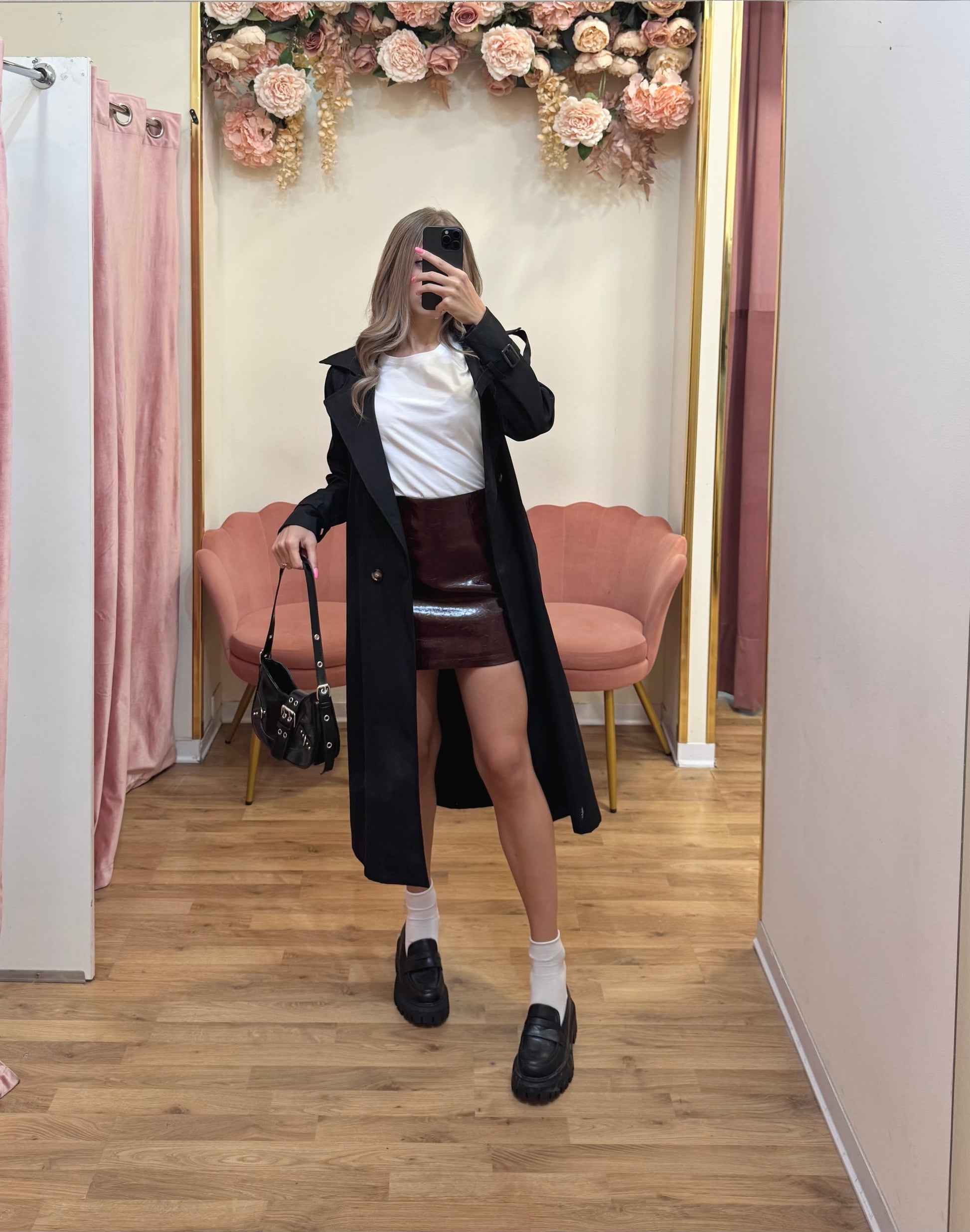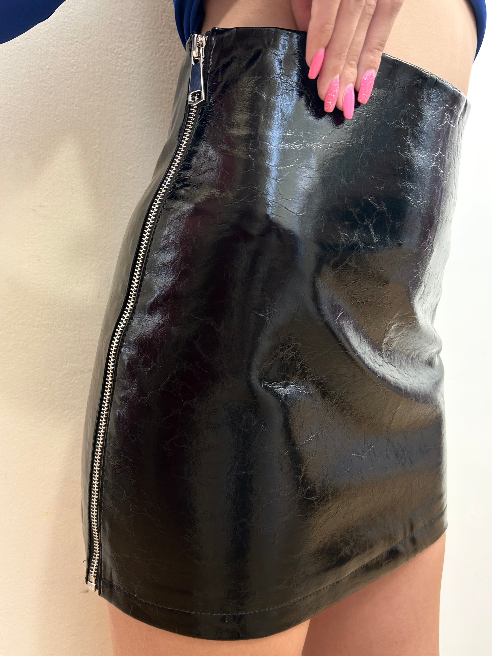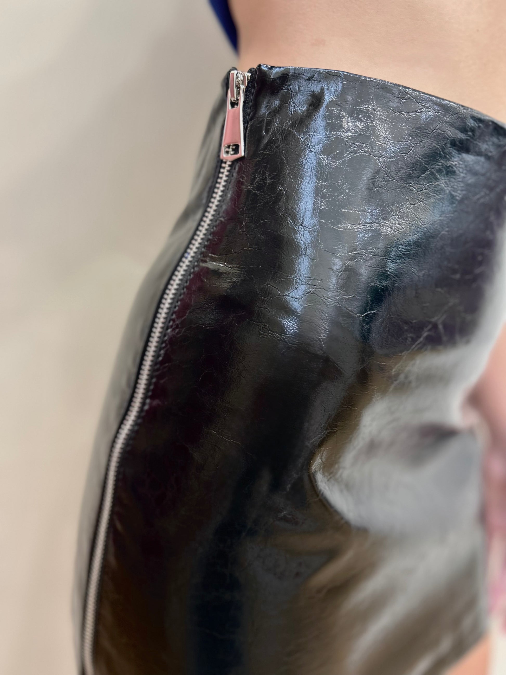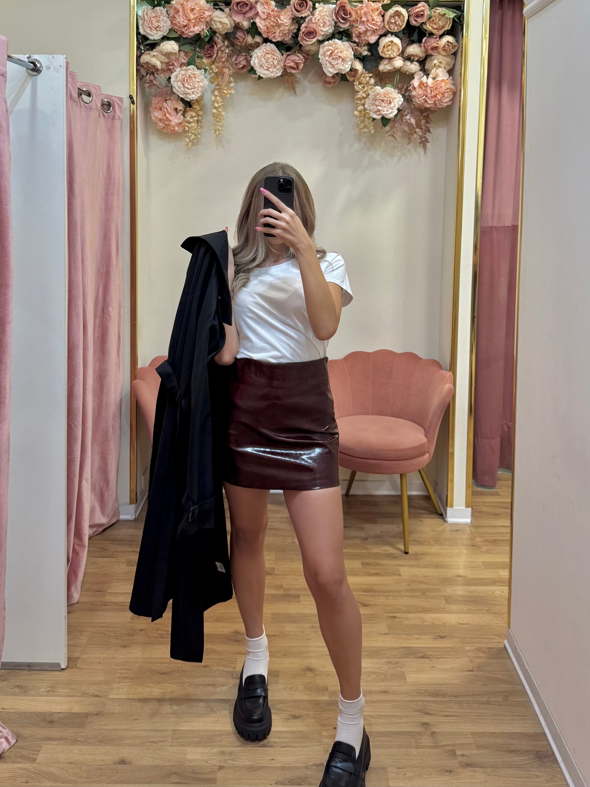 Questa gonna corta in ecopelle lucida è perfetta sia per occasioni eleganti che casual. Il suo materiale ecologico la rende una scelta sostenibile, mentre il design lucido la rende un'aggiunta elegante al tuo guardaroba. Versatile e alla moda, sarà un elemento essenziale per ogni stagione.