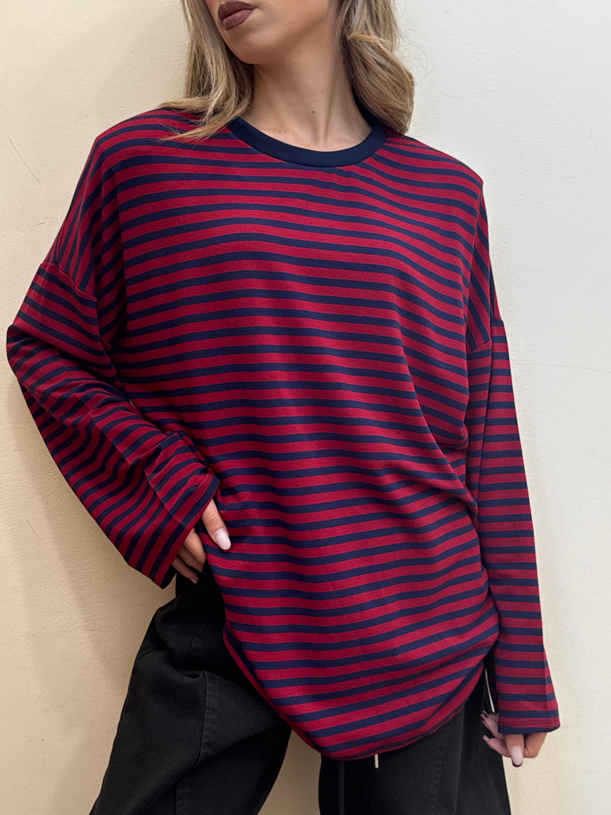 La MAGLIA OVER RIGHE è perfetta per chi vuole un look casual ma di tendenza. La maglia oversize a righe è comoda e stilosa, adatta ad ogni occasione. Con il suo design unico e moderno, questa maglia è l'aggiunta perfetta al tuo guardaroba.