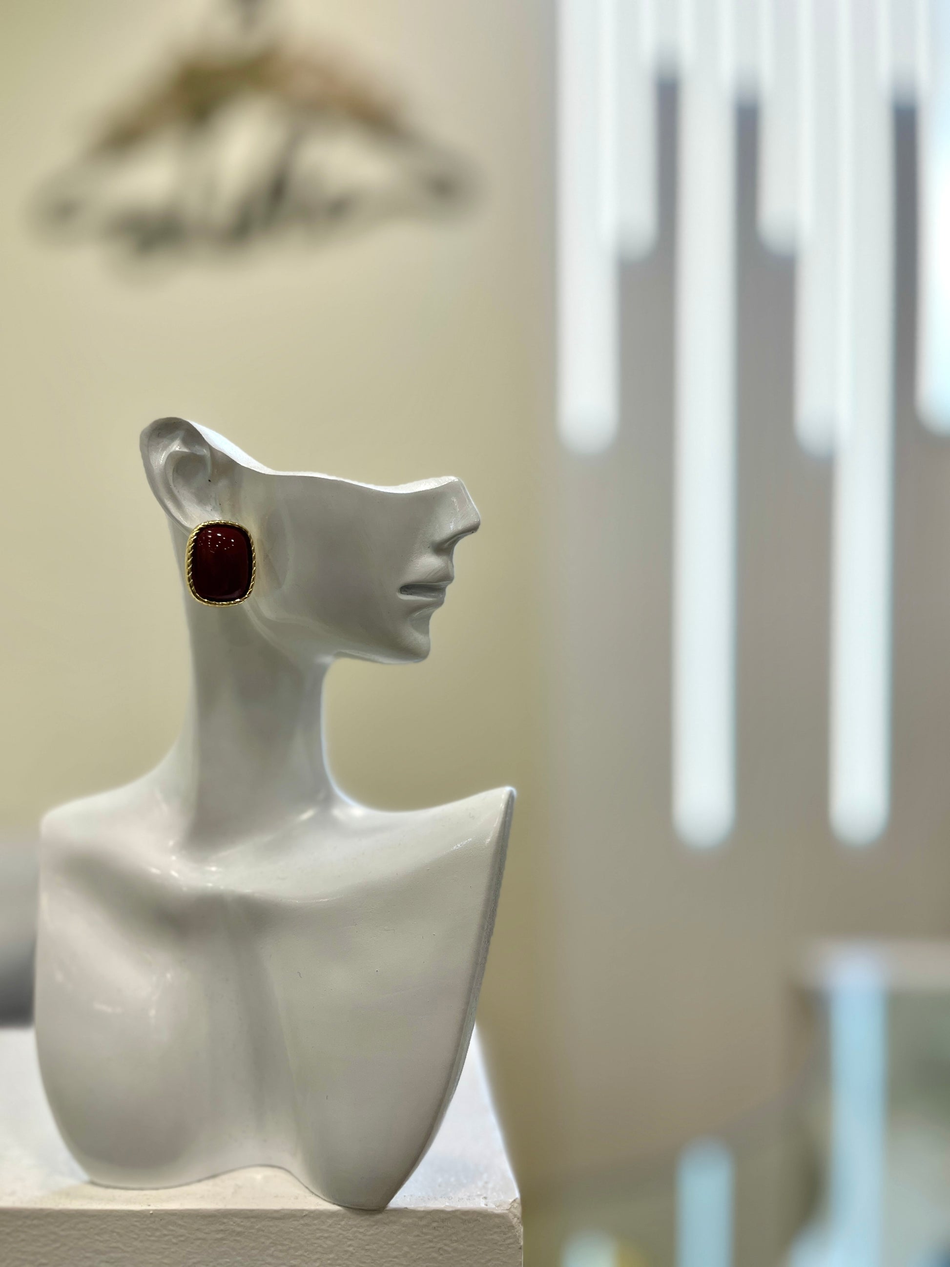 Con i nostri orecchini bordeaux, aggiungi un tocco di sofisticatezza al tuo look. La cornice in oro Γ¨ perfetta per elevare l'eleganza dei tuoi outfit. Aggiungi stile e lucentezza ai tuoi orecchini con il classico bordeaux.