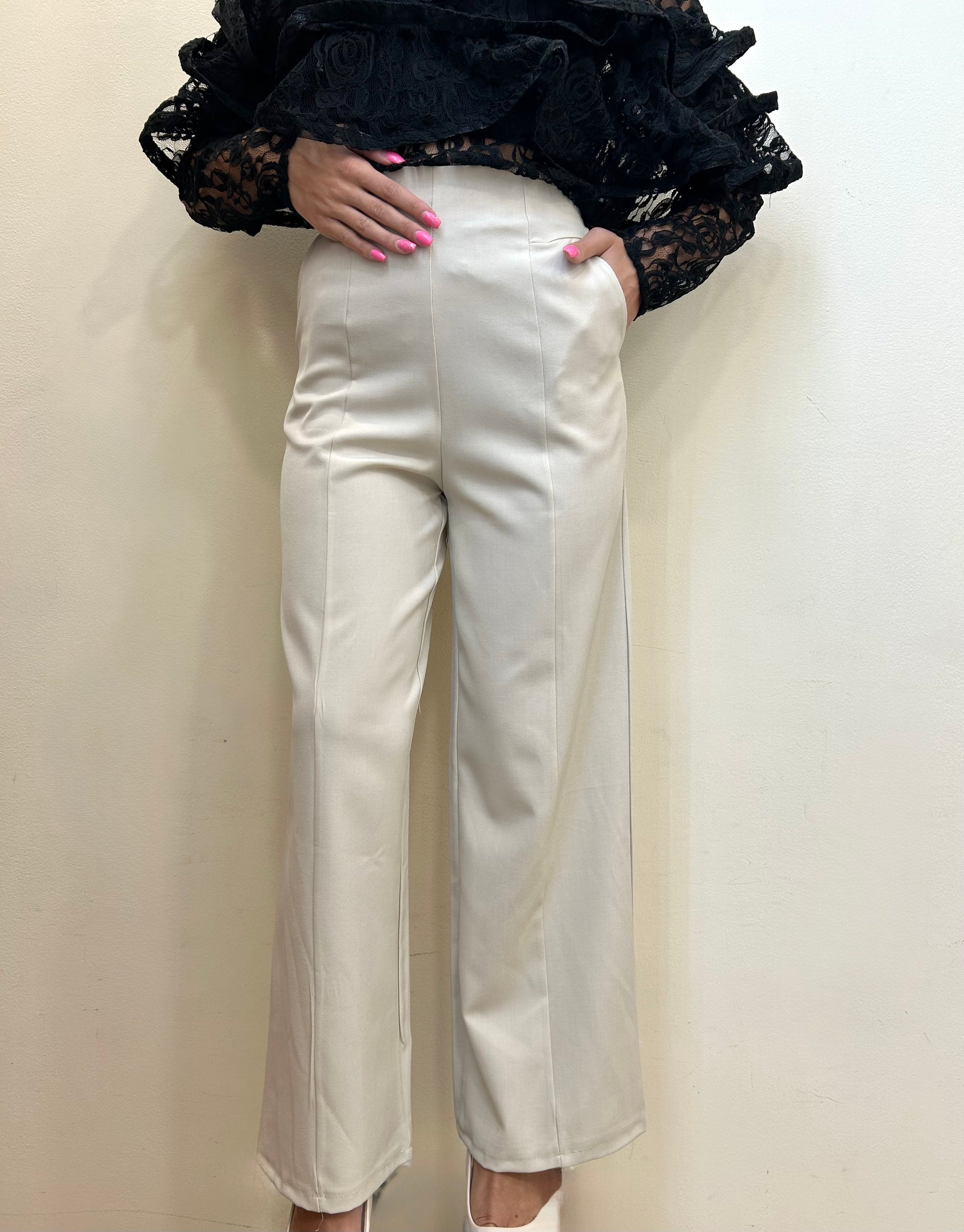 Questo pantalone è perfetto per qualsiasi occasione, sia elegante che casual. La sua vestibilità aderente garantisce una linea slanciata, mentre la finitura leggermente larga alla caviglia aggiunge un tocco di originalità.