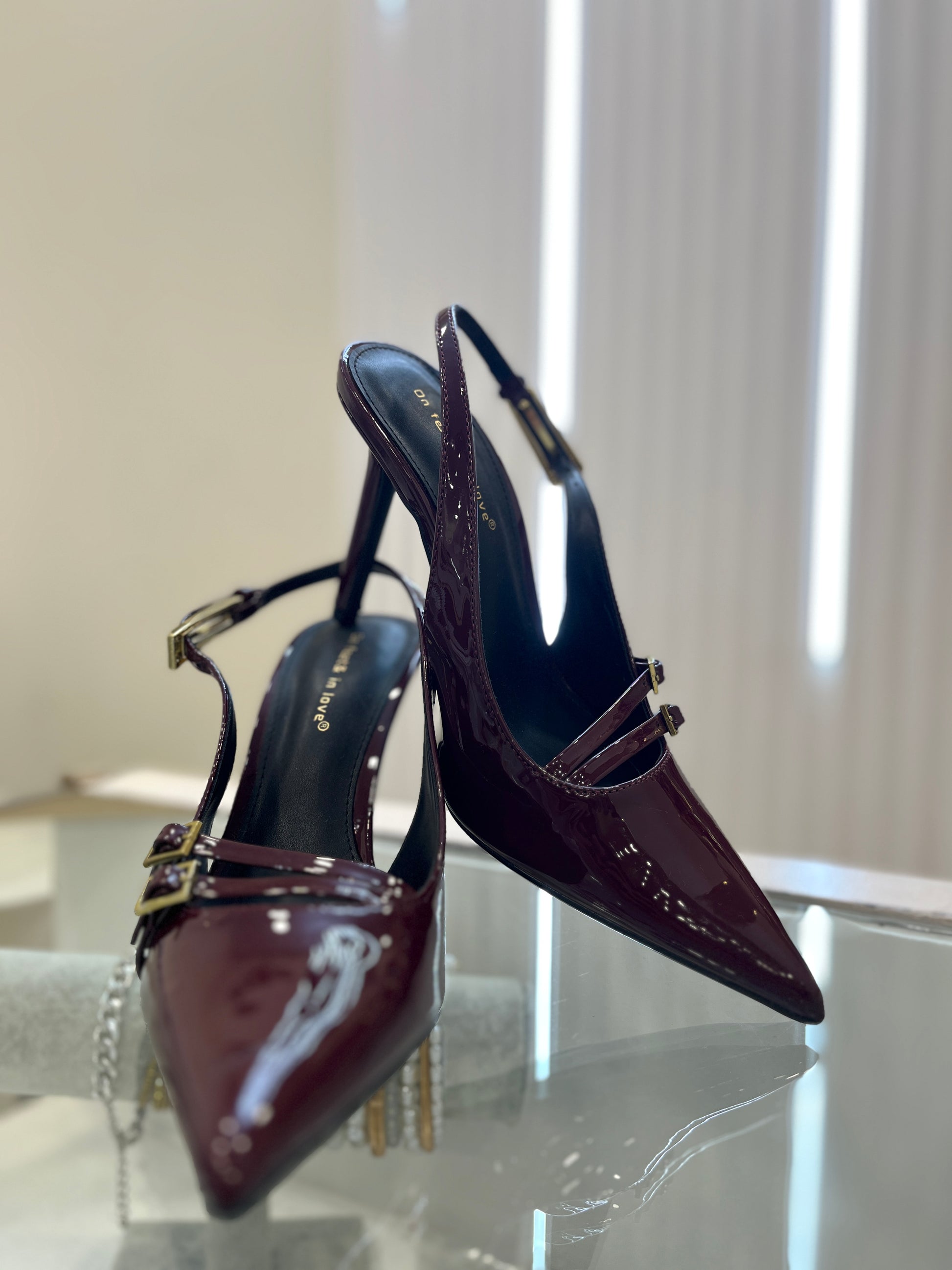 Impreziosisci con stile con i nostri tacchi Shery a punto con fibiettine bordeaux. Grazie al tacco di 10 cm, sarai sempre elegante e sofisticata. Combina comfort e fascino in un unico design.
