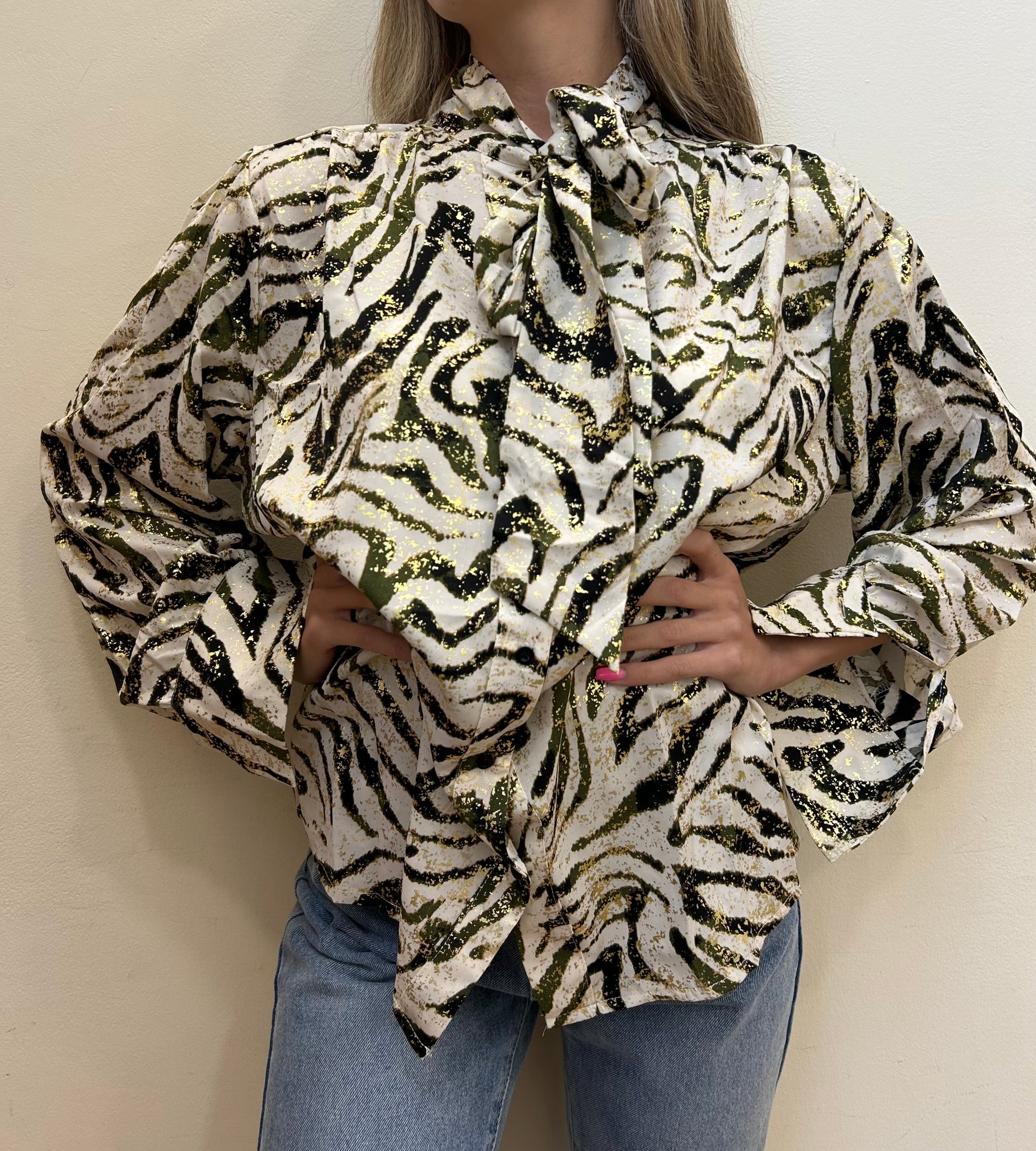 La Blusa Fantasia è perfetta per chi cerca un tocco di eleganza e originalità nel suo guardaroba. Il fiocco davanti aggiunge un dettaglio unico a questa blusa dalle fantasie uniche. Progettata con cura e attenzione ai dettagli, la Blusa Fantasia è il capo ideale per completare il tuo outfit in modo raffinato e distintivo.